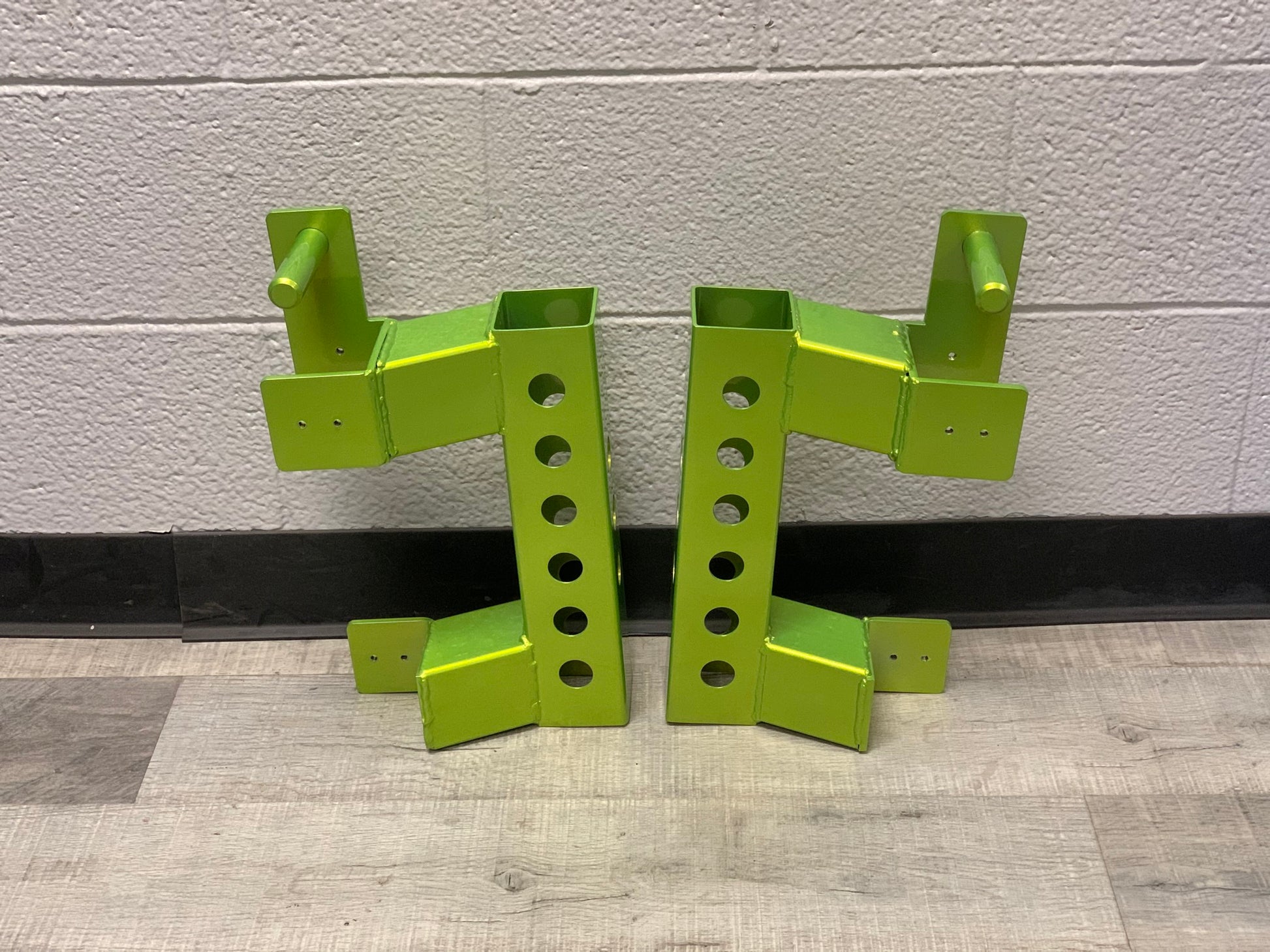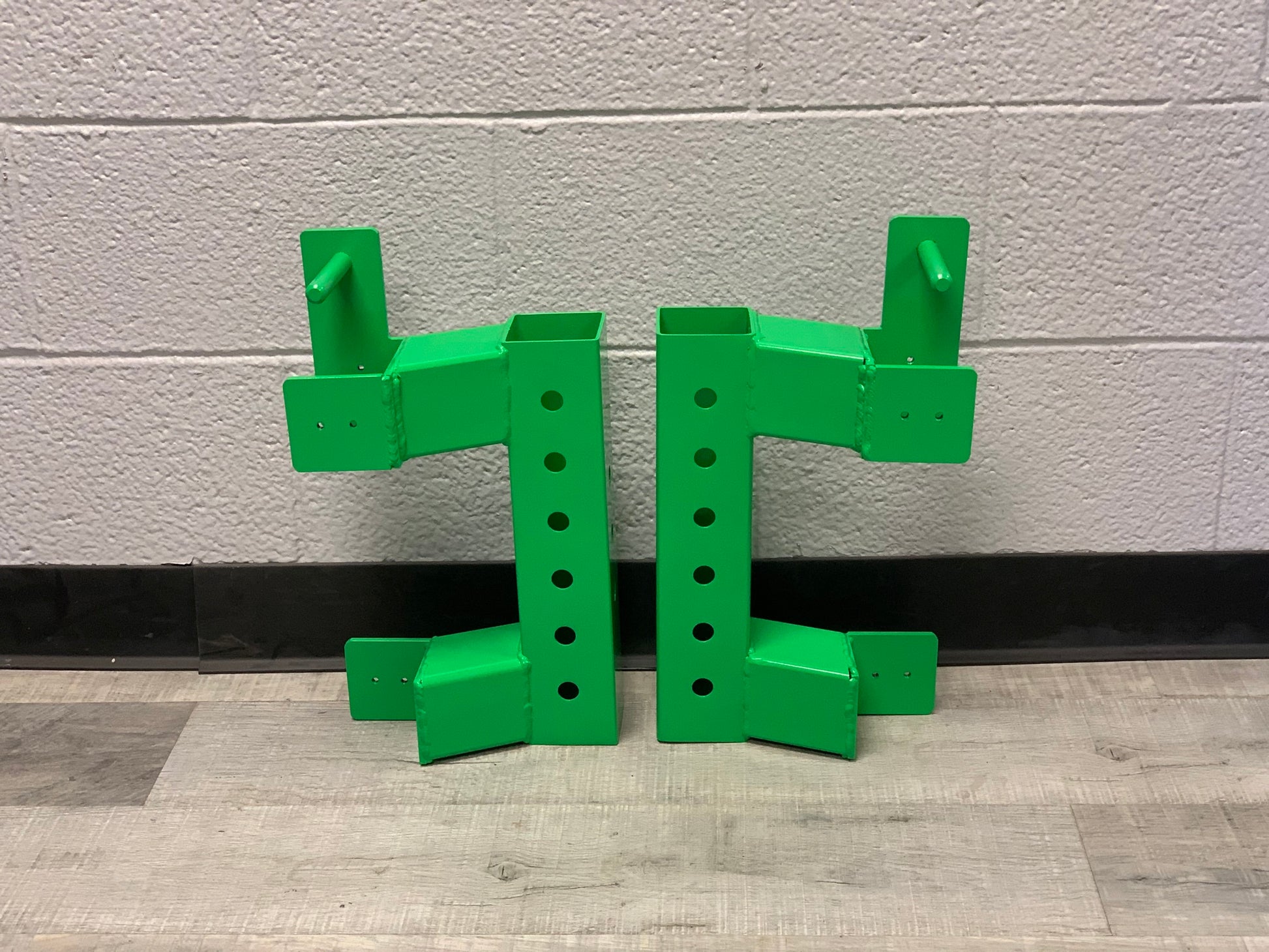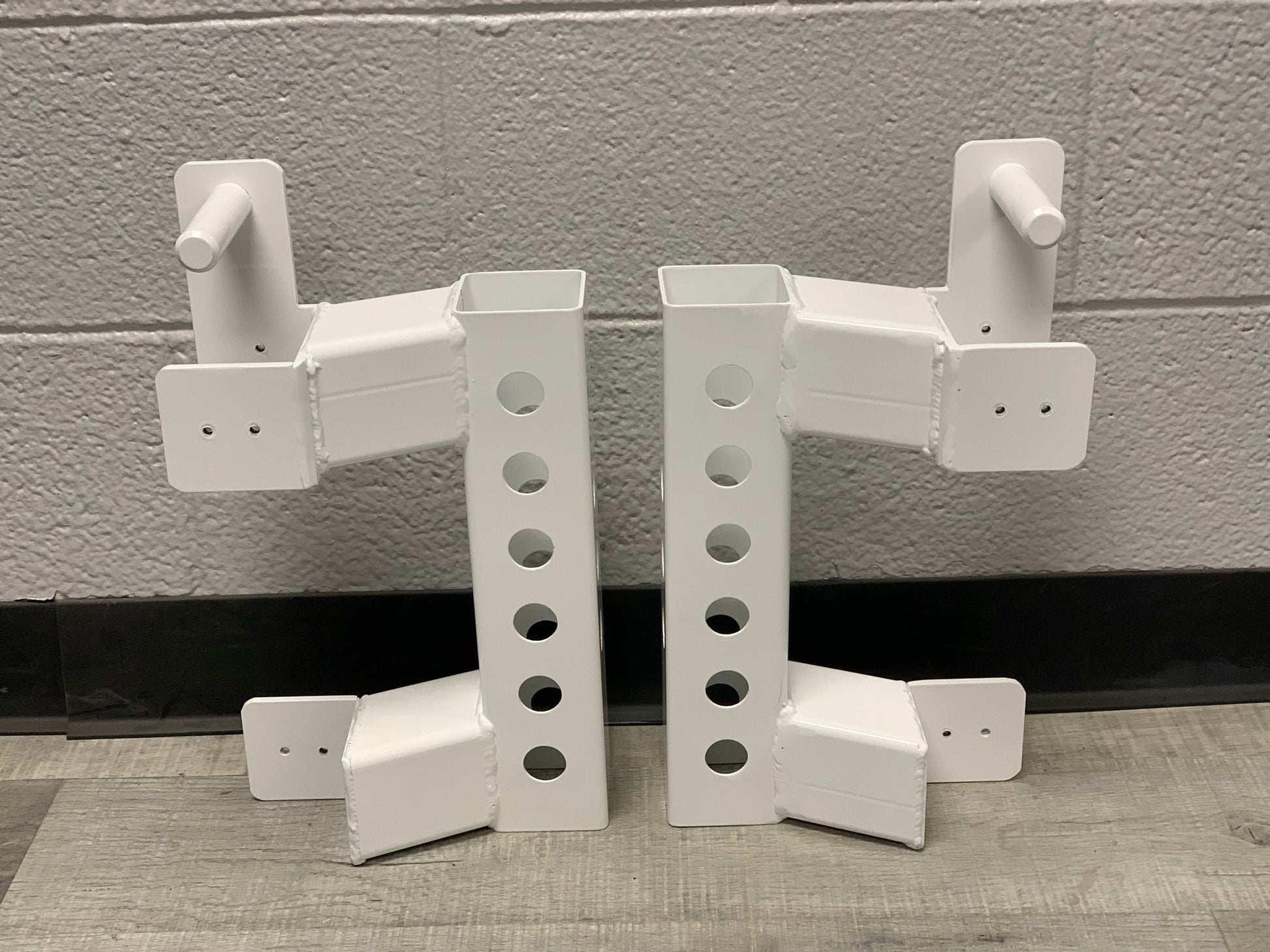 Are you hampered by shoulder mobility limitations? Then our Rack Offset Attachment is perfect for you! This apparatus lets you narrow the J cups and other rack attachments, allowing for easier execution of the wide grip bench press and squat.